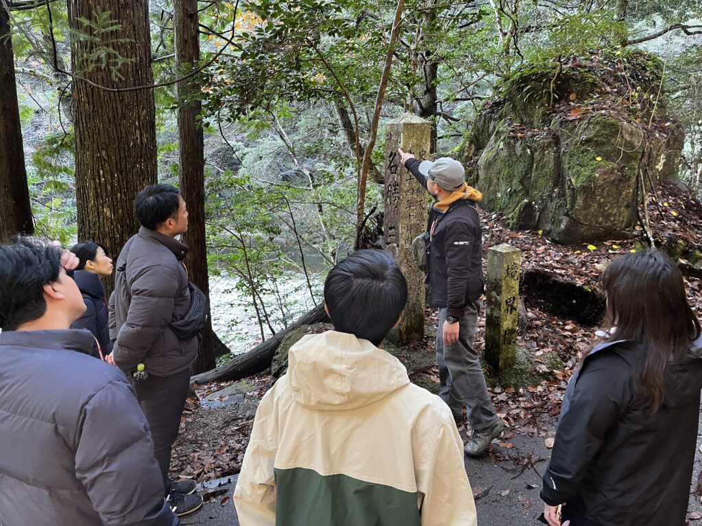 スタッフの皆さまは三段峡のコケなどの植物を中心に三段峡についてガイドの話に関心を持ってくださいました!