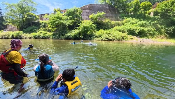 8月上旬に、鶴学園 初等中等教育研究センター主催 夏の課外活動【生き物と会える三段峡体験】をさんけんがお手伝いしました。
